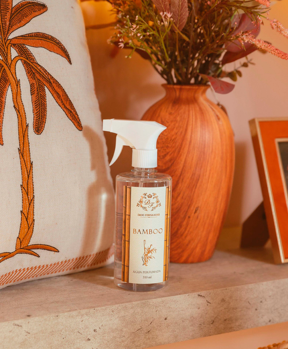 A Água Perfumada Bamboo 510ml Dani Fernandes foi criada para trazer frescor e sofisticação aos tecidos e ambientes. Sua fórmula exclusiva para tecidos evita manchas e oferece uma aplicação prática e segura.