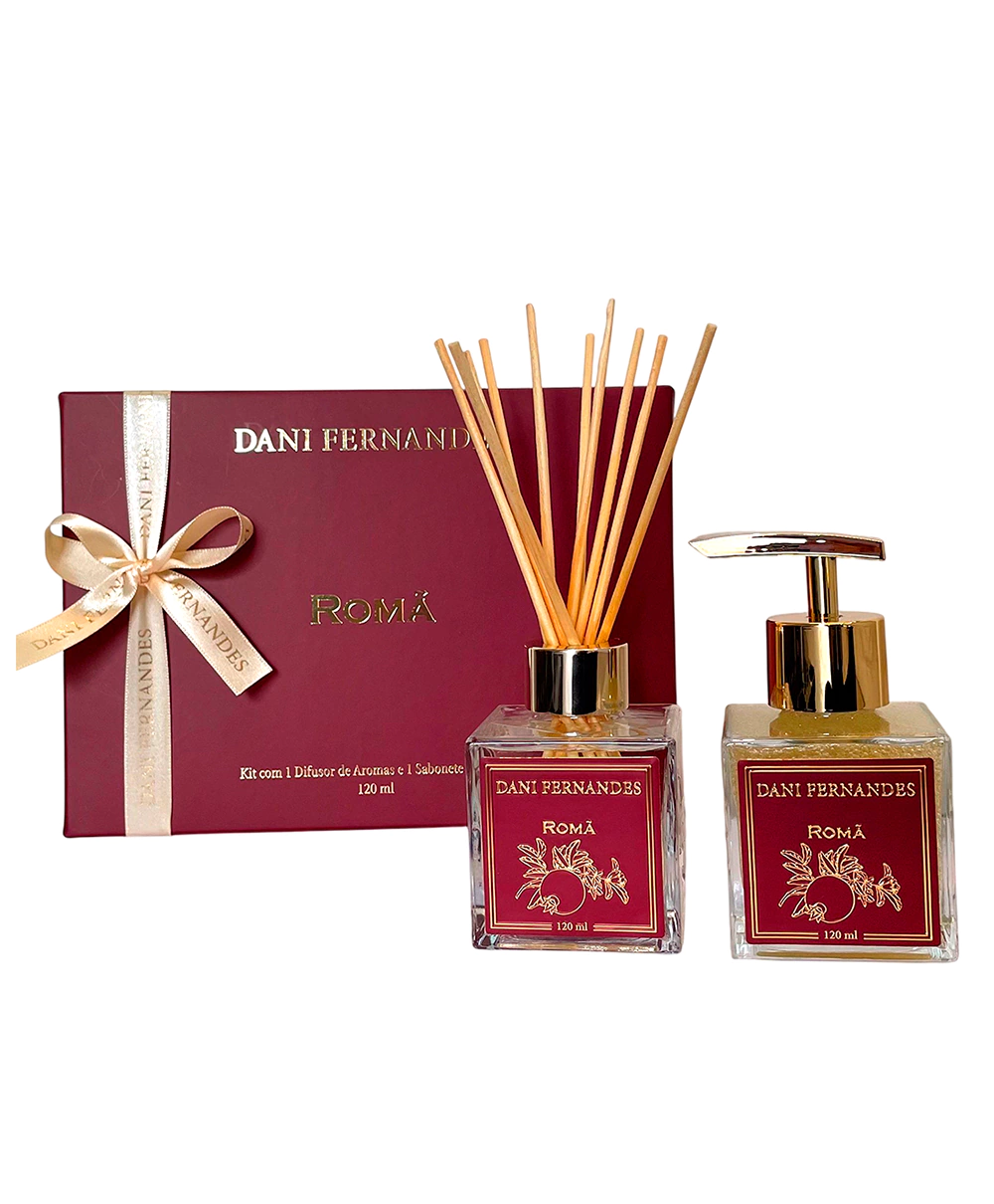 Este kit especial reúne dois clássicos da Dani Fernandes em uma embalagem encantadora e pronta para presentear. Composto por um Difusor de Aromas 120ml e um Sabonete Líquido 120ml, ambos na fragrância Romã, ele é ideal para surpreender